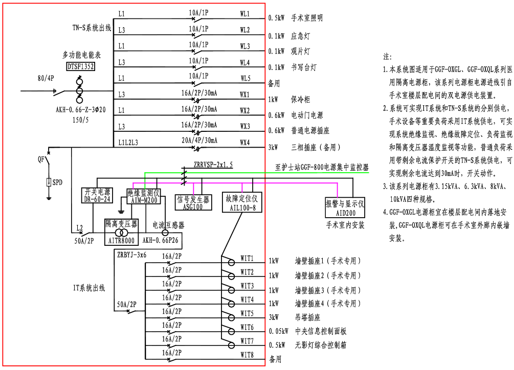 GGF-OXGL、GGF-OXQL醫用隔離電源柜系統接線圖