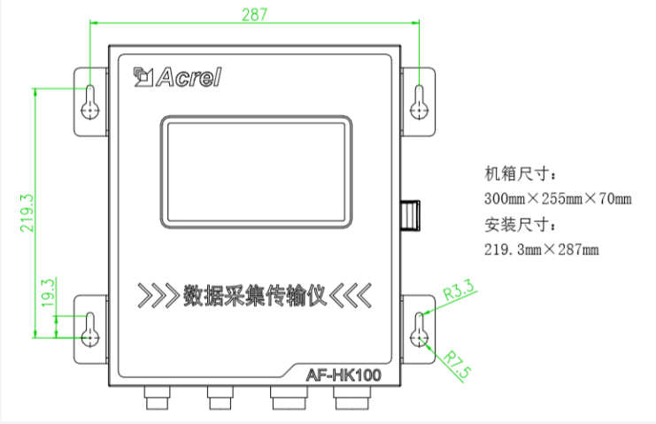 產品簡介:AF-HK100 污染源在線自動監控(監測)數據采集傳輸儀是應環保領域各級國控、省控 及市控污染源環境在線監控(監測)系統的需求而開發研制的產品,通過模擬通道、開關通 道、數字通道(RS232/485/LoRa)與前端各類監測儀器/儀表實現無縫連接,進行本地數據 采集、存儲、處理與展示,并通過 4G/有線等網絡將數據遠傳至監控中心。