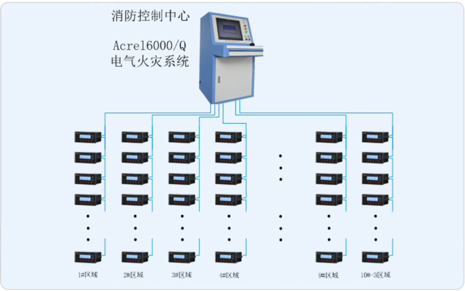 1.監(jiān)控報(bào)警 監(jiān)控設(shè)備能接收多臺(tái)探測(cè)器的漏電、溫度信息,報(bào)警時(shí)發(fā)出聲光報(bào)警信號(hào)