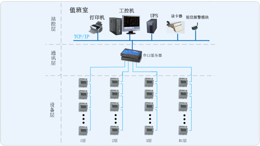 本系統主要實現對匯京國際廣場進行用電監控與電能管理。監控范圍為樓層DTSY1352-C商戶預付費儀表65塊,總線直接接入B1層值班室內串口服務器,從而在監控主機上實現總線上儀表與監控主機的數據連通。通過使用Acrel-3000智能預付費管理系統解決了由于商戶較多,管理不方便的問題,這樣既管理方便、又節省人力,大大減少了物業的投入。
