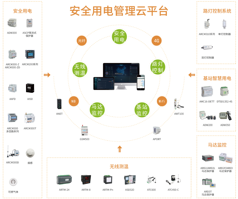 基于安全用電云平臺,演化出了無線測溫,基站智慧用電,路燈控制系統(tǒng)和馬達監(jiān)控云平臺。