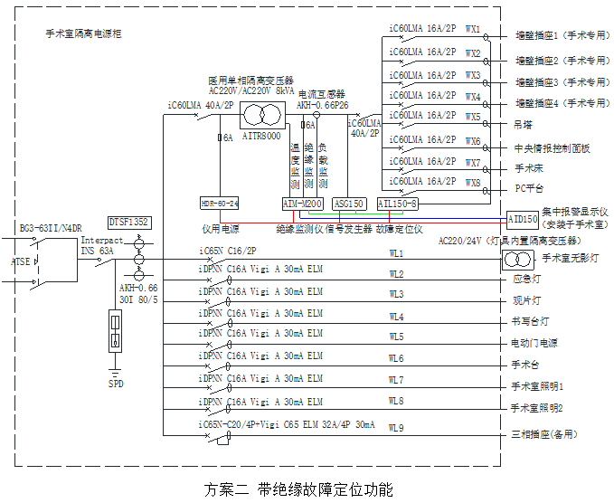 二、手術室配電解決方案(以GGF-O8G隔離配電柜系統圖為例)