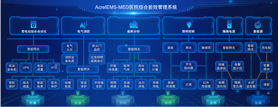 在經過精心的籌劃準備工作后,安科瑞電氣股份有限公司的AcrelEMS-MED醫院能效管理系統在大會上大放異彩,吸引眾多嘉賓蒞臨現場。AcrelEMS-MED安科瑞醫院能效管理系統由電力監控及能效管理系統組成,涵蓋了醫院中壓變配電系統、應急電源、隔離電源、照明控制、設備運維、環境監測等,貫穿醫院能源流的始終,幫助運維管理人員通過一套平臺、一個APP實時了解醫院配電系統運行狀況,并且根據權限可以適用于醫院后勤部門管理需要。在節能降耗和“碳中和”的大環境下,AcrelEMS-MED安科瑞醫院能效管理系統為醫療行業綠色、健康、可持續發展注入了新動力。