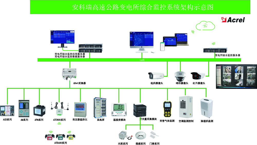 Acrel-2000E配電室綜合監(jiān)控系統(tǒng),可實(shí)現(xiàn)開關(guān)柜運(yùn)行監(jiān)控、高壓開關(guān)柜帶電顯示、母線及電纜測(cè)溫監(jiān)測(cè)、環(huán)境溫濕度監(jiān)測(cè)、有害氣體監(jiān)測(cè)、安防監(jiān)控,可對(duì)燈光、風(fēng)機(jī)、除濕機(jī)、空調(diào)控制等設(shè)備進(jìn)行聯(lián)動(dòng)控制。實(shí)現(xiàn)動(dòng)力環(huán)境各數(shù)據(jù)的檢測(cè)與設(shè)備控制,優(yōu)化動(dòng)力環(huán)境,避免運(yùn)行環(huán)境的失控導(dǎo)致配電設(shè)備運(yùn)行故障,保證維護(hù)人員安全,延長(zhǎng)設(shè)備使用壽命,實(shí)現(xiàn)配電動(dòng)力環(huán)境的分布式遠(yuǎn)程管理。
